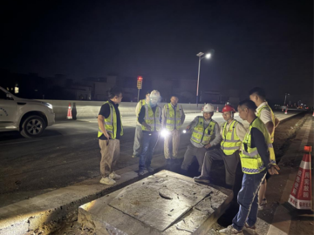 本次导改范围共5.9公路,包含GZTJ4标、GZTJ5标两个土建施工单位。在管理处的统筹指挥下,在总监办全体同仁的共同努力下,以路为家,无畏风雨,坚守在工程最前线,经过两个项目部的周密部署与连续奋战,顺利完成了此次交通导改的路基、路面、交安施工。为保障导改后行车安全,总监办主要负责人提前策划、过程监督,导改前又组织了多轮徒步检查,每一处施工部位都不放过,深度消除后期对车辆行驶会造成安全隐患的施工缺陷,最终达到验收标准要求。导改时分,总监办相关人员依然坚守岗位,督促指导项目部有序引导车流,最终确保了此次大规模交通转换的圆满成功,实现了工程建设与道路保畅的“双赢”,不仅极大缓解了长期以来的施工交通组织压力,更为项目接下来释放至关重要的右幅施工作业面打下坚实基础。